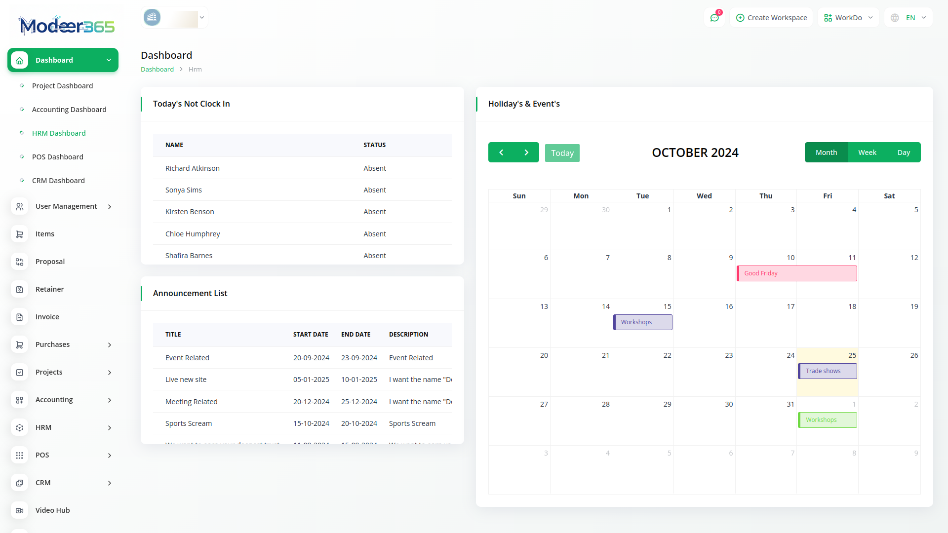 With Modeer365, you can conveniently manage all your business functions from a single location.