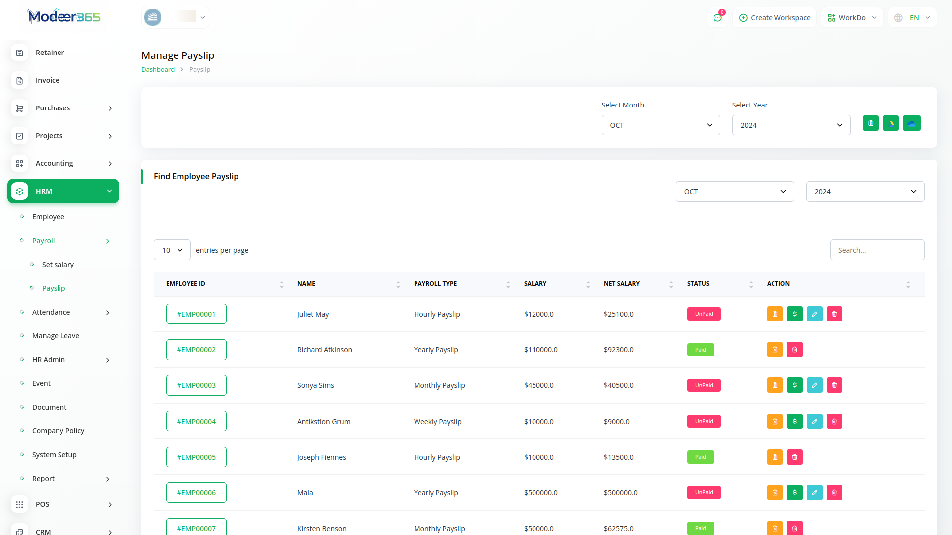 With Modeer365 HRM, you can manage key employee matters, recruit new candidates, boost employee productivity, and pay your employees for their hard work - Without stress, all from one place. Whether you are a consultant, small business owner, or large corporation - the system is designed for everyone.