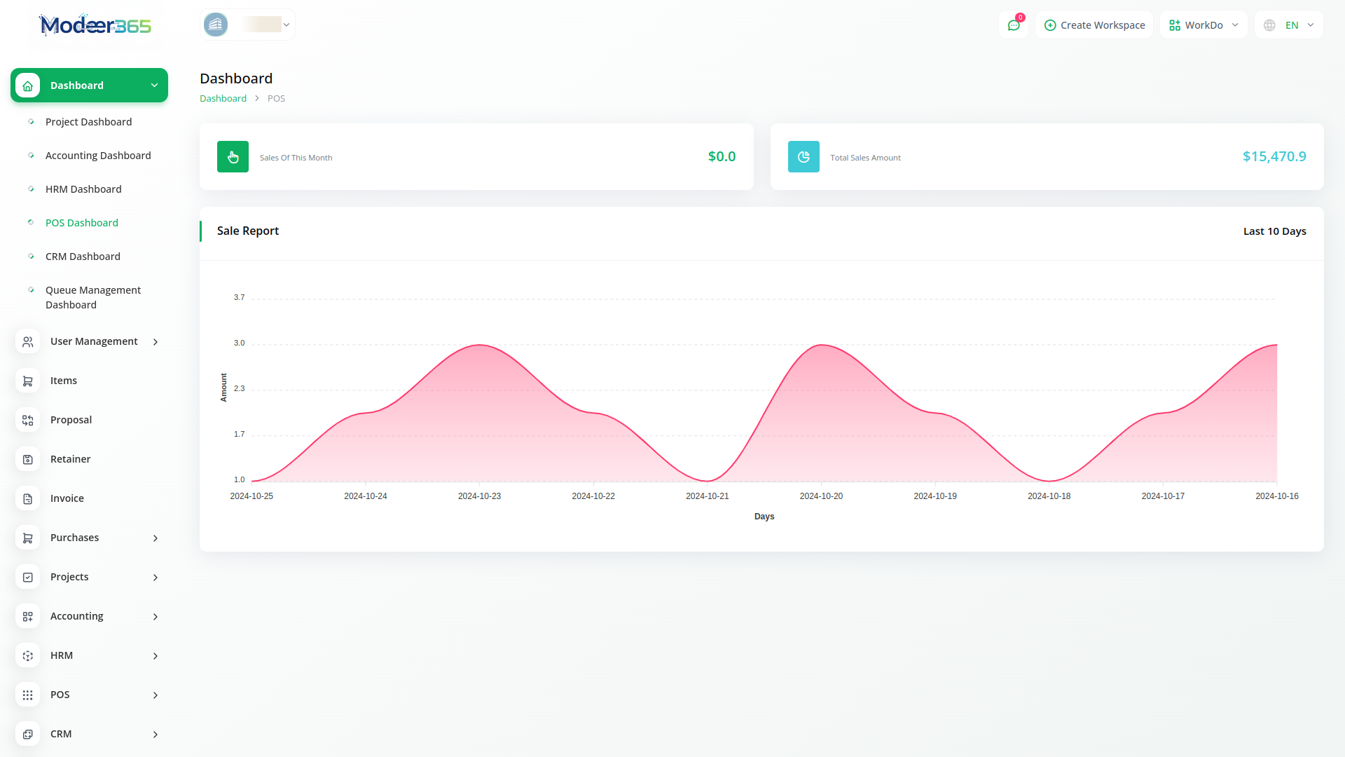 Welcome to the POS Module in Modeer365, your ultimate solution for streamlined sales management. Our platform offers a user-friendly dashboard where you can easily navigate through your sales activities. At the heart of the dashboard is a dynamic chart representing your sales reports, providing valuable insights into your business is performance. Whether you are a small retail store or a bustling restaurant, our POS Module empowers you to efficiently manage your sales process from start to finish.